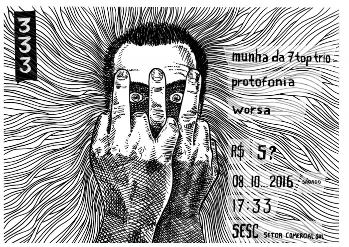 O projeto 333 estreia com trios musicais de Brasília. A primeira edição rola neste sábado (8 de outubro), às 17:33, no Sesc Presidente Dutra (Setor Comercial Sul). Ensaiando a proposta de apresentar três grupos com formação de três membros por edição, o evento traz Munha da 7 Top Trio, Worsa e Protofonia.