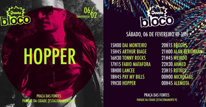 O 5uinto Bloco 2016 vai alegrar a folia de Carnaval com muita música eletrônica. O encontro acontece no dia 6 de fevereiro (sábado), a partir de 15 horas, na Praça das Fontes – Parque da Cidade (Estacionamento 9). O clã da festa 5uinto reuniu um time de mais de vinte DJs que se revesam na picapes em uma festa que acontece na rua pelo quarto ano, aberta ao público.