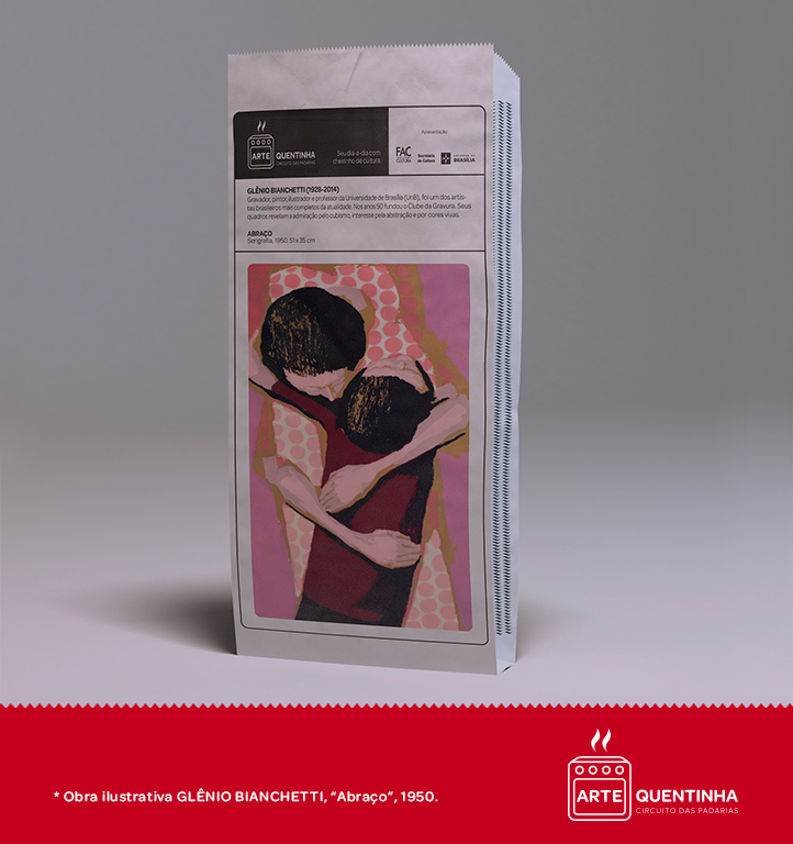 Sacos de pão se tornam telas para impressão de quadros no projeto Arte Quentinha. A ideia é aproximar as Artes Visuais do público através da seleção de 24 obras plásticas, de diferentes artistas de Brasília, que serão impressas em 130.000 sacos e estarão à disposição dos fãs do pãozinho quente todo dia. Para fazer com que as obras circulem por todo o DF, os idealizadores do projeto firmaram parcerias com padarias, que venderão seus pãezinhos nestes sacos especiais.As inscrições para a seleção estarão abertas até às 23h59 do dia 26 de junho. Podem se inscrever artistas plásticos, brasileiros ou estrangeiros, e também coletivos, uma vez que maiores de 18 anos e residentes no DF há mais de um ano. As inscrições se dão por meio 100% virtual, pelo site www.artequentinha.com.br. Cada inscrito, coletivo ou individual, poderá apresentar até duas obras, não necessariamente inéditas, em linguagem ou tema à escolha do artista.