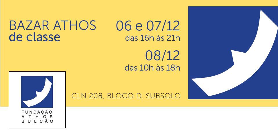 O Natal se aproxima e com ele o desejo de muitos brasilienses de ganhar ou presentear família e amigos com criatividade. Uma sugestão bacana é o Bazar Athos de Classe, promovido pela Fundação Athos Bulcão, com a presença de vários artistas da cidade.O evento acontece nos dias 6 e 7 (quinta e sexta, de 16 às 21h) e 8 de dezembro (sábado, das 10h às 18 h) em sua sede, localizada na comercial da 208 norte.