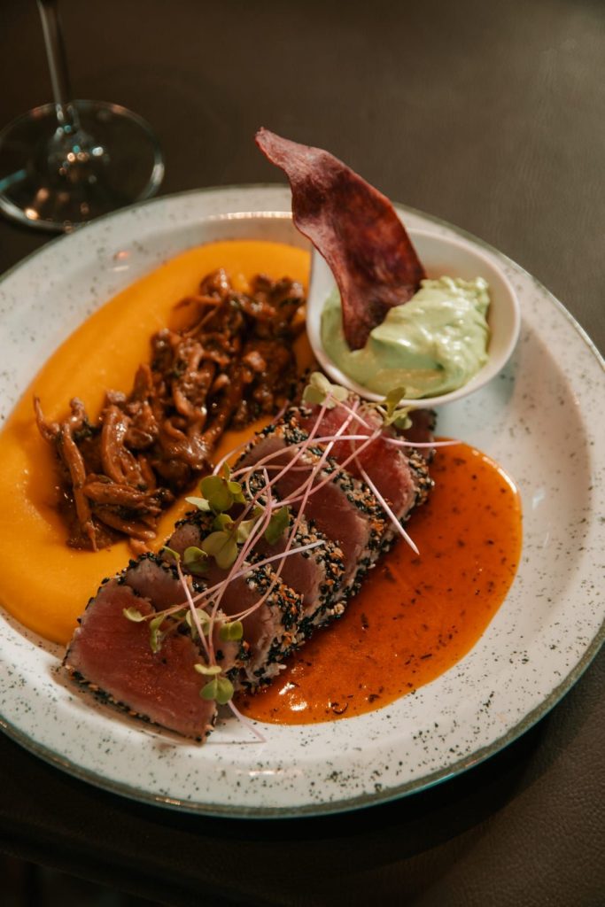 Para o menu de jantar, Scalopinne e Penne – Filé mignon cortado fino com cogumelos orgânicos frescos e ceboulette servido com penne Alfredo ou Pirarucu e Maracujá – Lombo de pirarucu com chutney de maracujá acompanhado de risoto de brócolis e farofa de castanha.