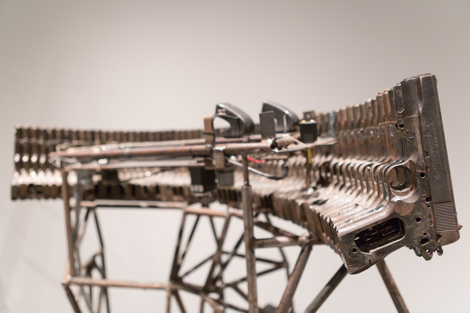 Pedro Reyes (1972) – “Trabalhar com arte é uma maneira de converter os instintos mais negativos, instintos de morte, em instintos de criação”, afirma o artista mexicano, que exibe em “Ciclo” o trabalho “Desarme”, uma série de instrumentos musicais automatizados, confeccionados a partir de pedaços de 6,7 mil armas confiscadas e inutilizadas pelo governo em uma das regiões mais violentas de seu país. Trata-se de uma intervenção que combina tecnologia, poesia e plasticidade com equilíbrio preciso, como em diversos outros trabalhos da exposição.
