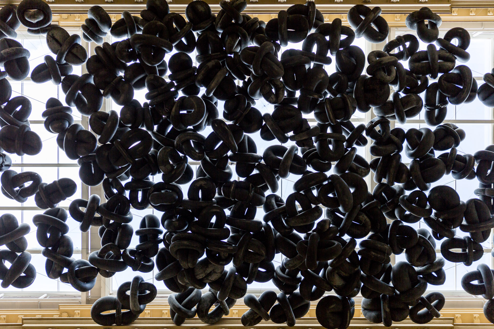 As 16 grandes instalações e esculturas que serão espalhadas pelo CCBB Brasília incluem a impactante intervenção de autoria do alemão Michael Sailstorfer, feita a partir de câmaras de pneu entrelaçadas, e o enorme autorretrato do canadense Douglas Coupland intitulado “Cabeça de chiclete”, sobre o qual os visitantes serão orientados a colar chicletes mascados.