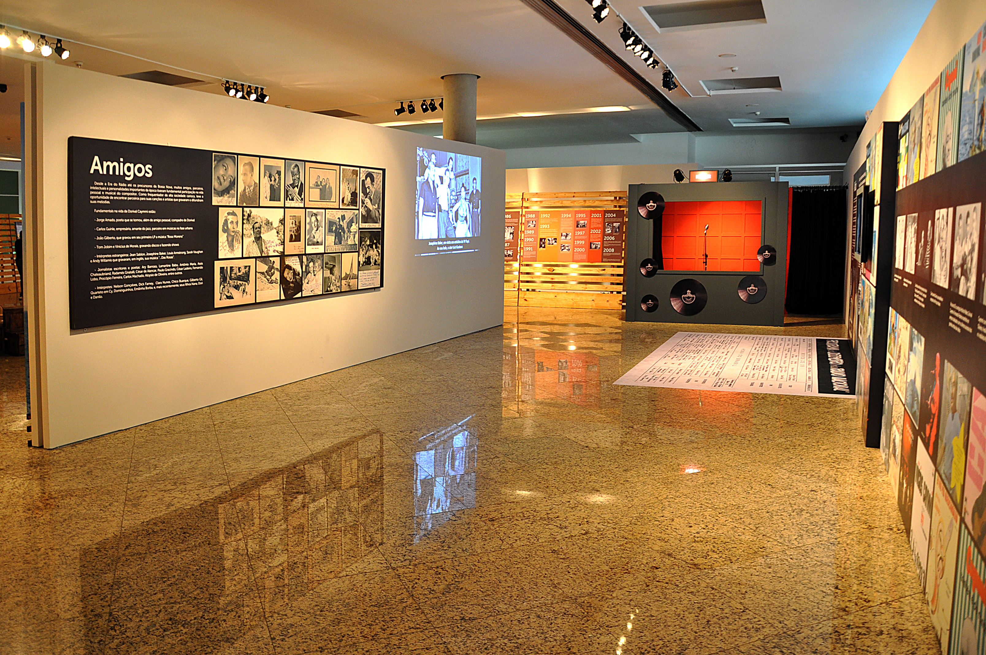 Na Linha do Tempo, foram selecionadas datas, fatos e fotos que retratam a vida de Caymmi, desde sua infância até os últimos dias. A Vida Familiar está representada na parte dedicada às pinturas de Caymmi, outra de suas faces. Já no módulo Rádio estão os momentos importantes da vida de Caymmi, seus amigos, a influência da música na Era do Rádio e a difusão de sua obra. Neste ponto, uma atração diferente: um karaokê para que todos possam cantar uma música de Dorival.
