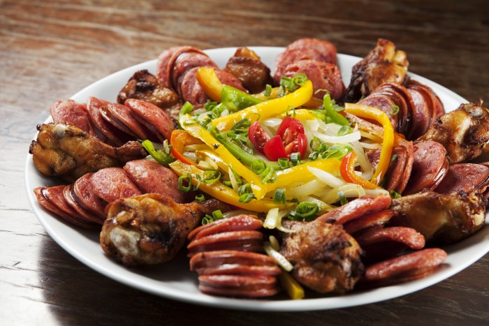 Mix do Cerrado – Provolone à milanesa, linguiça artesanal, pernil e castanha de baru servido com molho picante