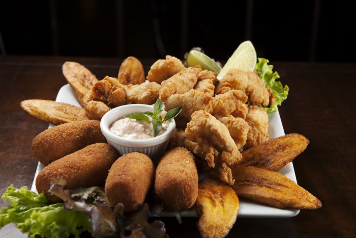 O Cerrado no Nosso Mar – Mix de Casquinhas de Caranguejo, Camarões fritos, batatas à vinagrete. Acompanha farofa com castanha de Baru