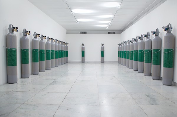 Escultura feita de gás respirável chamado de ar medicinal, comumente utilizado para recuperação de pacientes em hospitais. Retirado da atmosfera, esse ar é decomposto em seus diversos elementos, purificado, artificialmente recomposto e engarrafado. É um dos ares mais puros que se pode respirar no planeta, livre de toxinas e impurezas, poderia ser considerado uma atmosfera respirável em extinção.