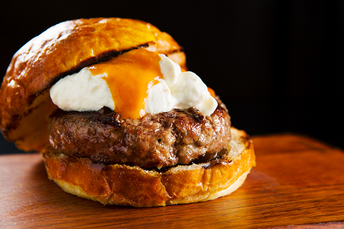 Parrilla Burger Baco – Burger Black Angus, queijo da Canastra, cebola caramelizada, bacon e Aioli no brioche