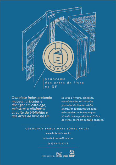 Existe um crescente número de profissionais envolvidos no circuito da bibliofilia e das artes do livro no Distrito Federal. De olho neste universo, o projeto Index DF vai mapear, articular e divulgar a produção local em um catálogo virtual.