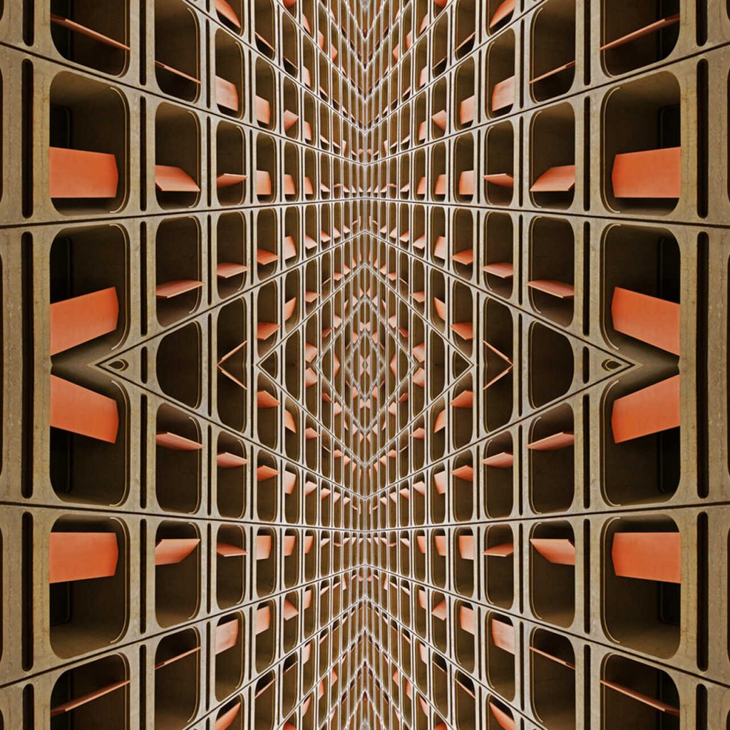 Os brise-soleils (de Le Corbusier) e os cobogós (criação multicultural do português COimbra, do alemão BOeckmann e do brasileiro GÓis) resultam no grafismo chiaroscuro que Isabel capta com sensibilidade e apuro técnico para compor mosaicos com inspiração nos azulejos de Athos Bulcão, decompondo e recompondo a realidade em imagens geométricas, com planos fantásticos e profundidade hipnótica.