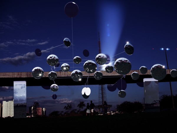 A artista conta que uma das inspirações para o trabalho ‘Viagens imóveis’ é a própria arquitetura única de Brasília, que propicia a experiência de se sentir em uma amplidão inigualável: “Brasília é uma cidade habituada à experiência de enxergar a sua paisagem como miragem refletida em espelhos. Há inúmeros prédios que se mesclam à paisagem e refletem o céu, a vegetação, os passantes, e o fluxo dos deslocamentos, criam panoramas infinitos em movimento como um ‘quase – cinema’ contínuo e ao vivo. Deste modo, o trabalho dialoga com esta peculiaridade da cidade, repercute e fragmenta esta paisagem em múltiplos pontos de vista simultâneos, cuja configuração desse conjunto de superfícies reflexivas alterna-se segundo a direção fluida e efêmera dos ventos, à semelhança de um móbile.” Completa Jacqueline Belotti.