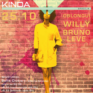 Kinda com os DJs Oblongui, Bruno Leve e Willy. Sorteio de 2 pares de cortesias.