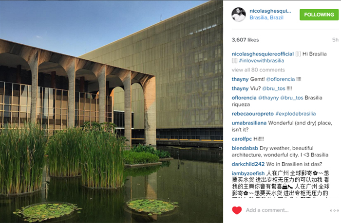 Neste sábado (17 de outubro), Ghesquière e sua entourage formada por dez pessoas, estiveram em Brasília em visita a pontos turísticos, com direito a clique do Palácio do Itamaraty no Instagram e a hashtag #inlovewithbrasilia.