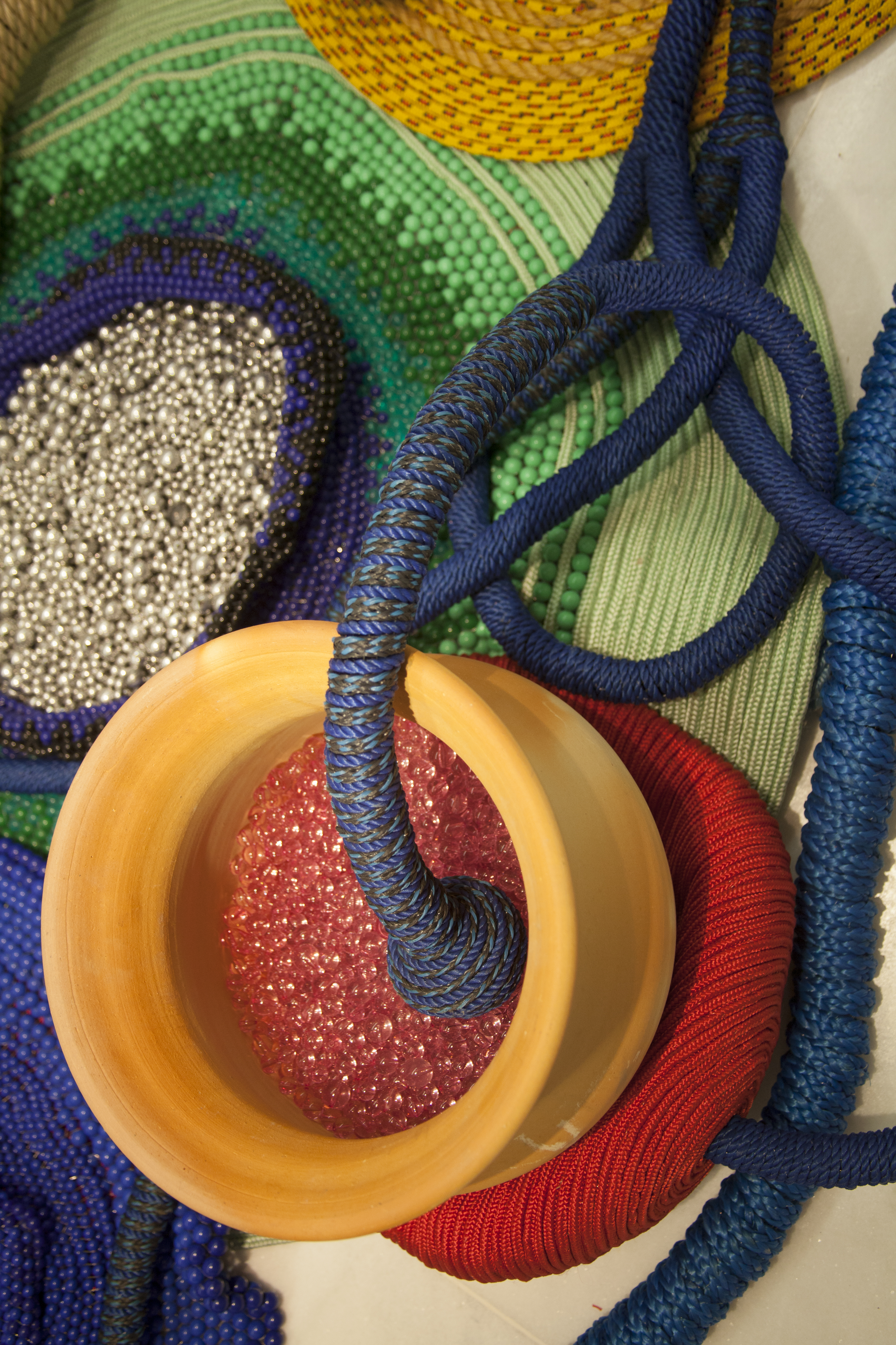 Em “O Grande Espiral”, Maria Nepomuceno também utiliza objetos usados e que carregam uma vivência. “Gosto de trançar as memórias das minhas próprias origens e experiências, além de promover o encontro entre presente, passado e futuro”.
