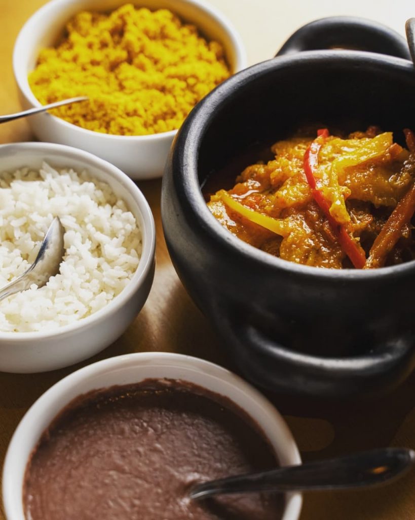 Entre os carros chefes da casa estão o acarajé R$ 44,00 (Porção com 6 mini bolinhos acompanhados de vatapá, vinagrete e camarão seco), que também tem a porção vegana, em que o camarão seco é substituído pela moqueca de maturi (castanha de caju verde que é uma iguaria), as moquecas de peixe e maturi, R$70,00 (individual) e R$130.00 (duas pessoas), que vem acompanhada de arroz, farofa de dendê e feijão de leite. Tem ainda a moqueca de banana da terra, um dos pratos mais pedidos, R$60,00 (individual) R$115,00 (2 pessoas), com os mesmos acompanhamentos das outras moquecas.