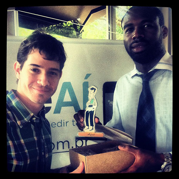 Gabriel Silva premia John, o brasiliense que mais utilizou o serviço. Divulgação.