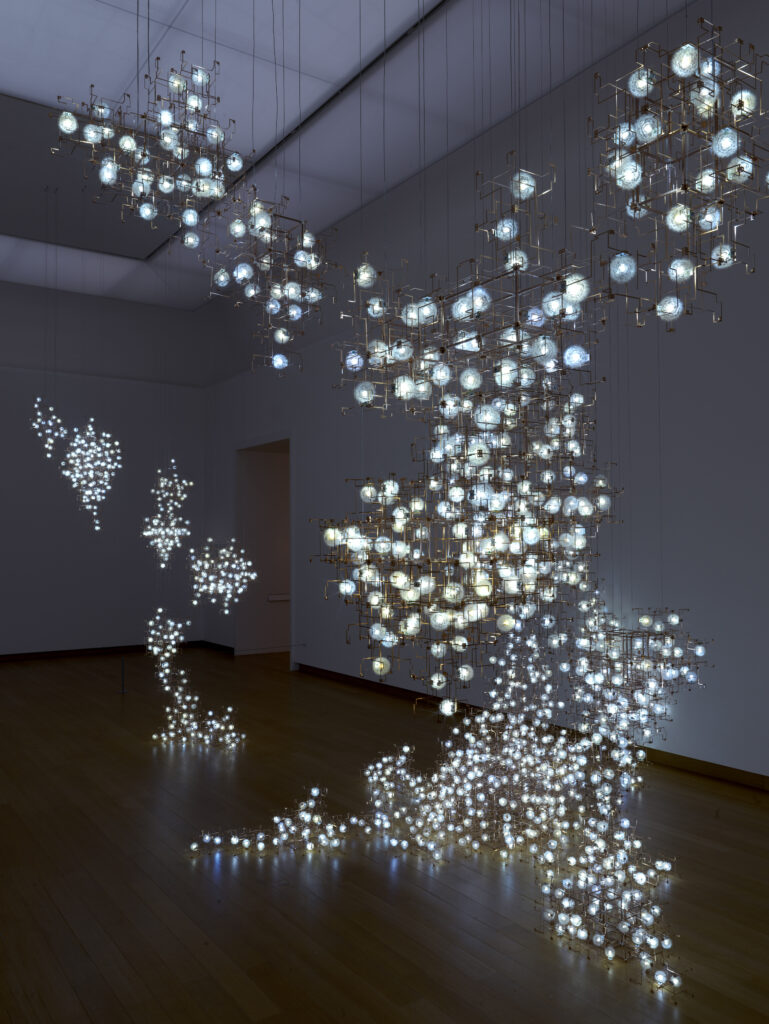 Circuitos elétricos tridimensionais, de bronze, ficam conectados a sementes da planta dente-de-leão, que emitem luzes. Trata-se de uma escultura com forma potencialmente infinita, que pode crescer ou encolher, dependendo do espaço que ocupa. Para a construção, a dupla recorreu a sementes que, uma a uma, receberam luzes de LED, num processo artesanal que resiste aos métodos de produção em massa e à cultura do descarte. A instalação estará presente na galeria 1.