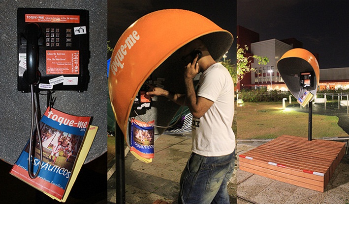 toque-me poesia é uma oficina teórico-prática, que articula e produz conteúdos a partir de questões relacionadas à oralidade: a poesia falada – gravada e que poderá ser ouvida pelo público através dos orelhões – mas também com forte ligação às questões relativas a “contação” de histórias (em nosso caso, com uso de recursos tecnológicos contemporâneos). Os participantes terão, além de orientações teóricas, contato com diversos materiais das artes visuais que remetam ao projeto, tais como gravações de vozes; captura de sons ambientes; e processos de escritas. Neles, os alunos trabalharão com estímulos da escrita criativa, desenvolvendo seus próprios textos – ora individualmente, ora de forma coletiva. Os participantes experimentarão a escrita em consonância com novos suportes de propagação de textos poéticos, tais como capturas de vozes e sons ambientes (áudios). Os poetas Alex Dias e Francesca Cricelli (OSNÁUTICOS) auxiliarão os participantes na construção de seus textos e poemas, fornecendo-lhes referências práticas e teóricas, tirando suas dúvidas, e instigando-lhes o olhar para novas possibilidades de criação. O artista multimídia Eduardo Salvino auxiliará esses participantes nas escolhas, edição e montagem, dos poemas criados, inserindo-os nas interfaces de toque-me, ou seja, telefones públicos (orelhões) o que resultará não só na montagem final do “site specific”, mas, sobretudo, na difusão de uma nova “paisagem sonora local”.