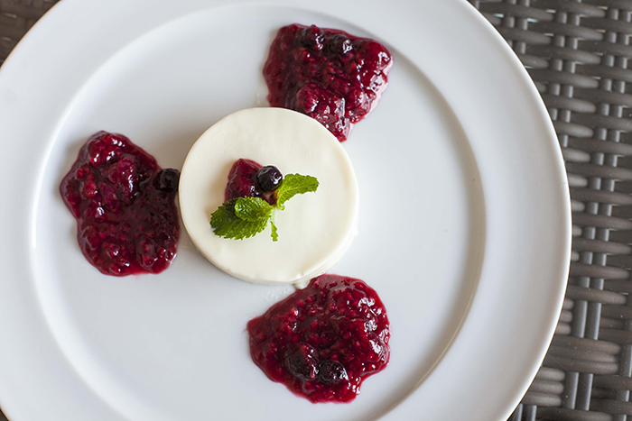 O peixe bella maniera com molho de camarão, ervas e cogumelos de Paris vem na sequência. O prato acompanha risoto de tomate fresco e manjericão. Para finalizar, o chef prepara uma sobremesa típica do Norte da Itália, da região de Piemonte: a panna cotta con crema di frutti di bosco tem o frescor das frutas vermelhas da estação.