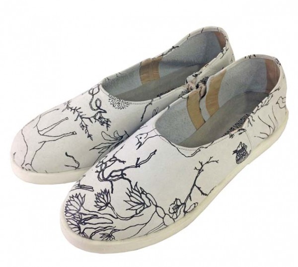 O artista plástico Paulo André criou estampas que trazem a flora e a fauna da serra. Raízes surgem em sapatilhas como se tivessem descido das pernas e cravado no chão. Bordados em alto relevo remetem a flores e rios. Pedras também aparecem em calçados com design sinuoso. Cordas estão entrelaçadas em sandálias. Saltos em madeira são torneados à mão.