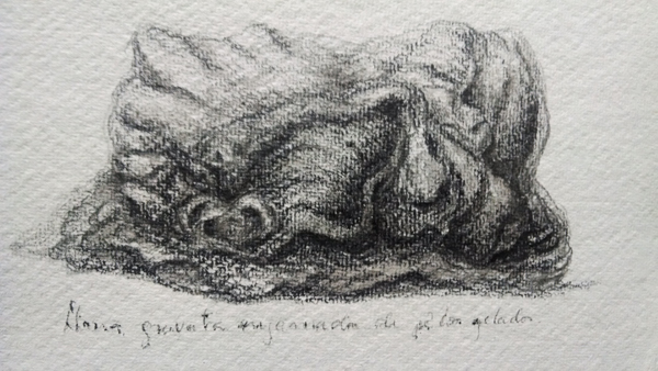 “A maioria dos trabalhos foi feita lentamente, sem pensar, sem pretensão em ser obra. Desenhos e aquarelas que surgiam em momentos de ausência de força. Foram hiatos na escritura da minha tese. Apareceram em um pequeno apartamento de Saint Denis (França), onde morei por três anos durante meu doutorado em filosofia. Apareceram sem histórias.” Completa.